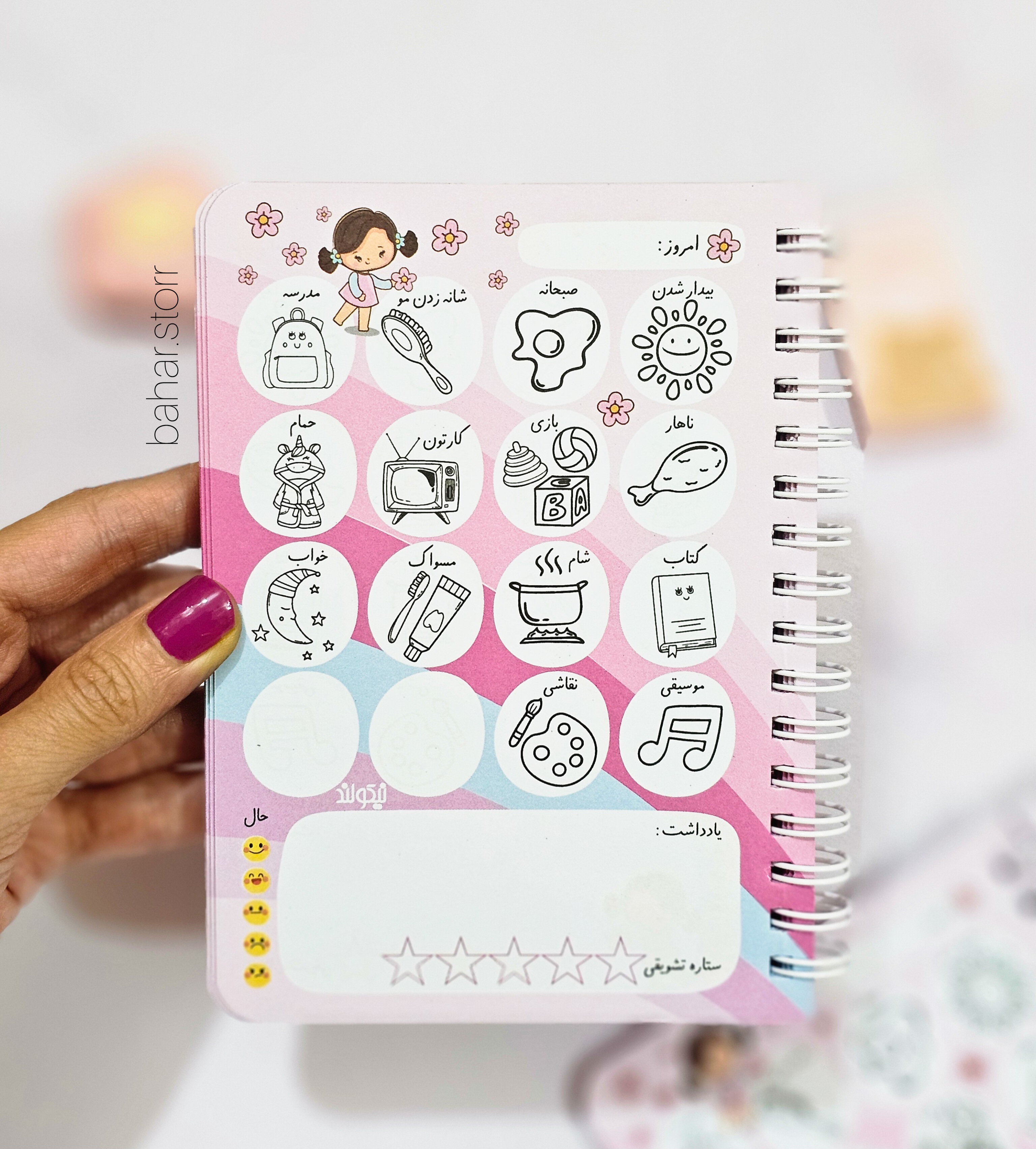 پلنر کودک ابزاری سرگرمکننده و آموزشی برای کودکان است که به آنها کمک میکند فعالیتهای روزانه، تکالیف و اهداف کوچک خود را سازماندهی کنند. این پلنر با طراحی جذاب، رنگارنگ و خلاقانه، یادگیری نظم و مسئولیتپذیری را برای کودکان جذاب میکند و مناسب استفاده در خانه و مدرسه است.