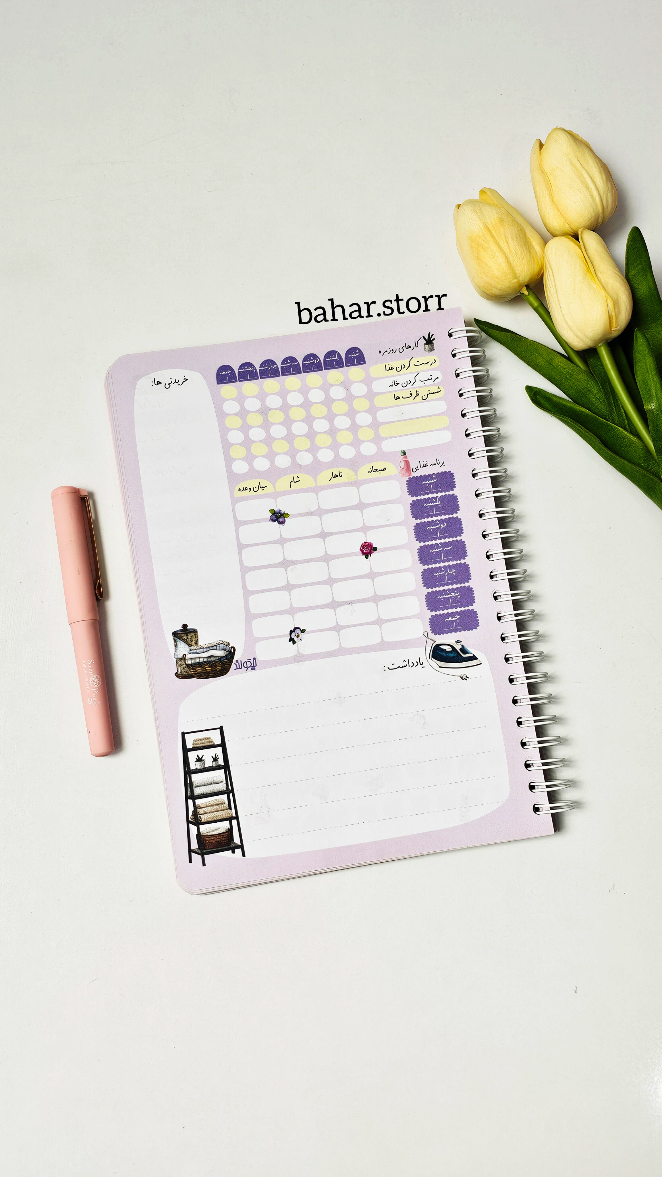 پلنر خانهداری یک دفتر برنامهریزی کاربردی است که به شما کمک میکند کارهای روزانه، هفتگی و ماهانه منزل را به بهترین شکل مدیریت کنید. با این پلنر میتوانید برنامه نظافت، خرید، آشپزی و حتی بودجه خانواده را منظم کنید و آرامش بیشتری در زندگی روزمره داشته باشید.