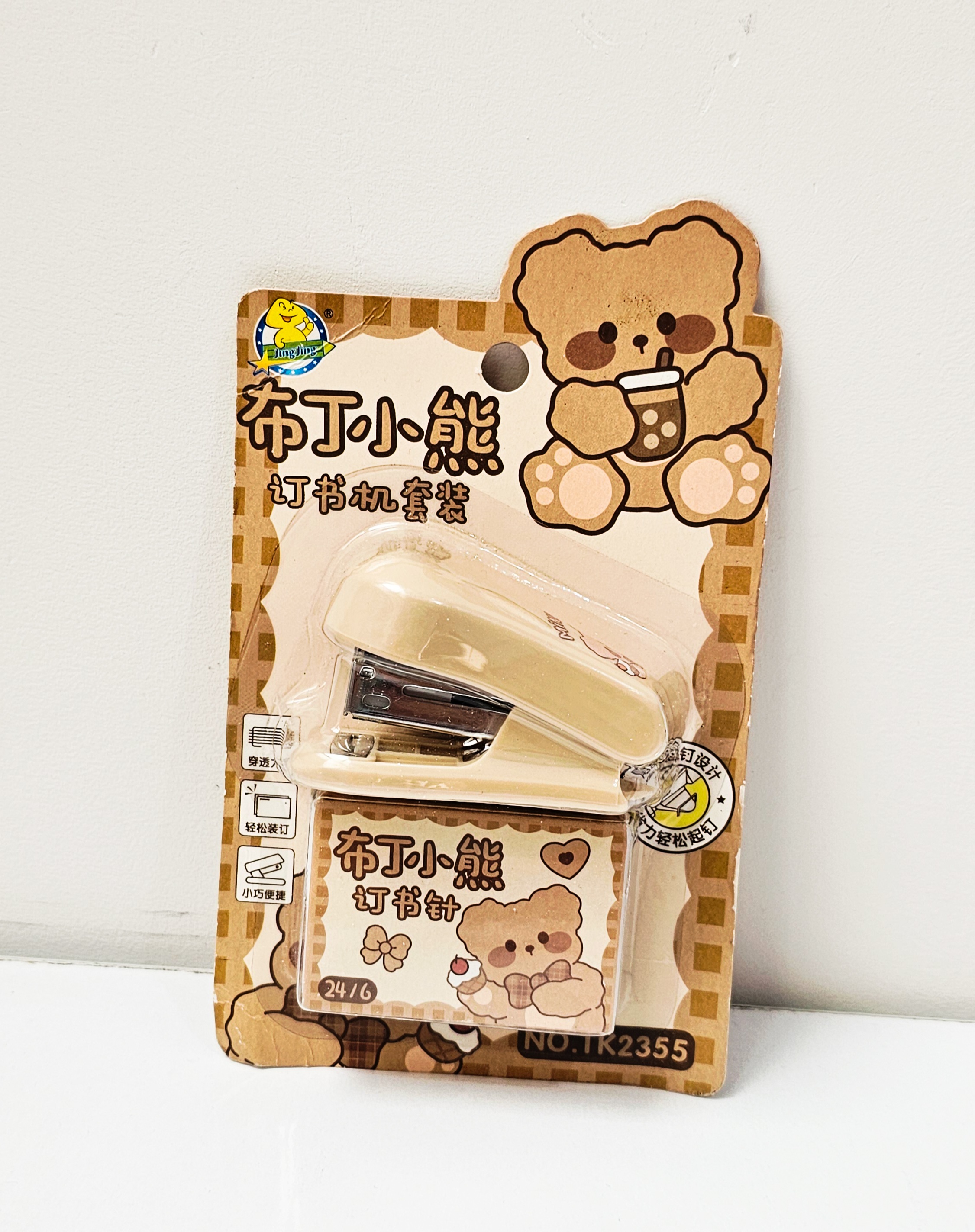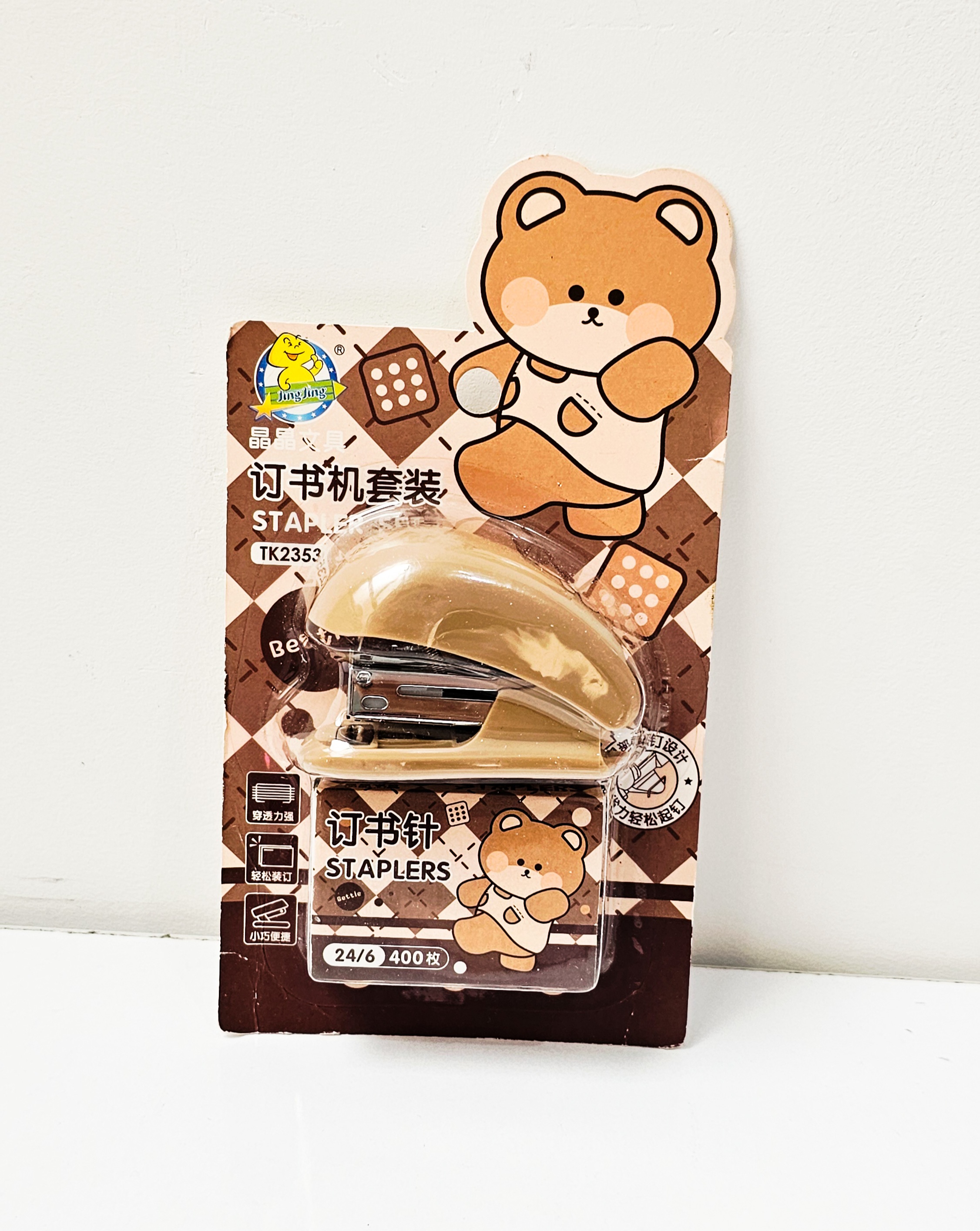 منگنه کوچیک به همراه ۴۰۰ عدد سوزن منگنه خرسی قهوه ای