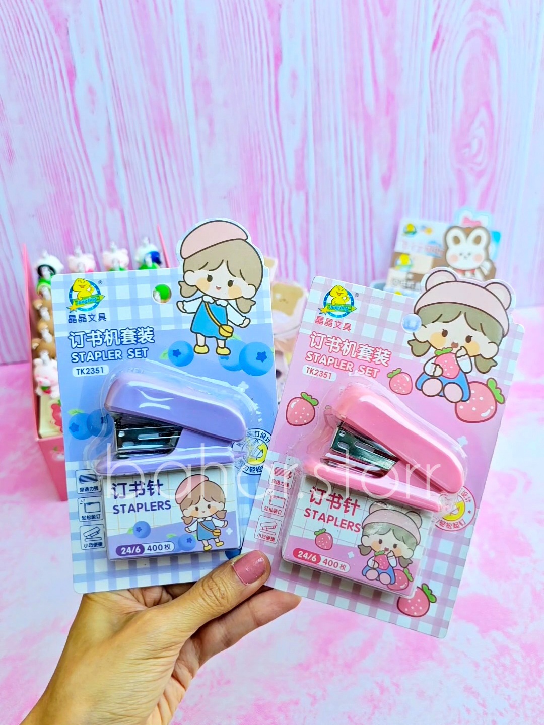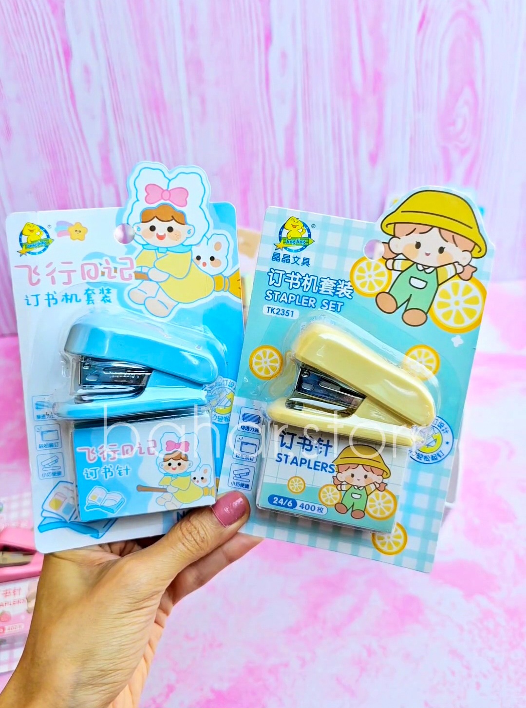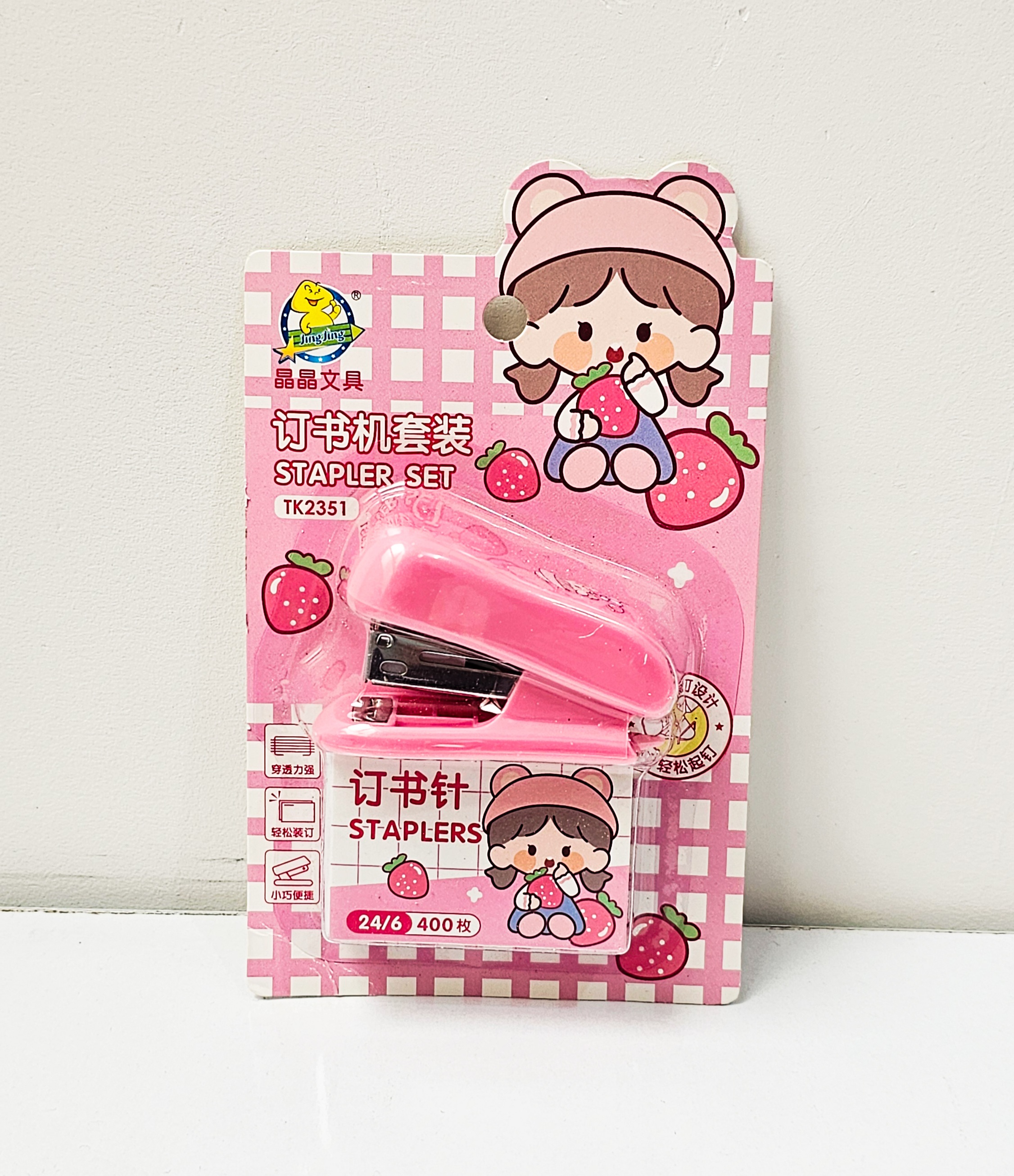 منگنه کوچیک به همراه ۴۰۰ عدد سوزن منگنه دختر صورتی