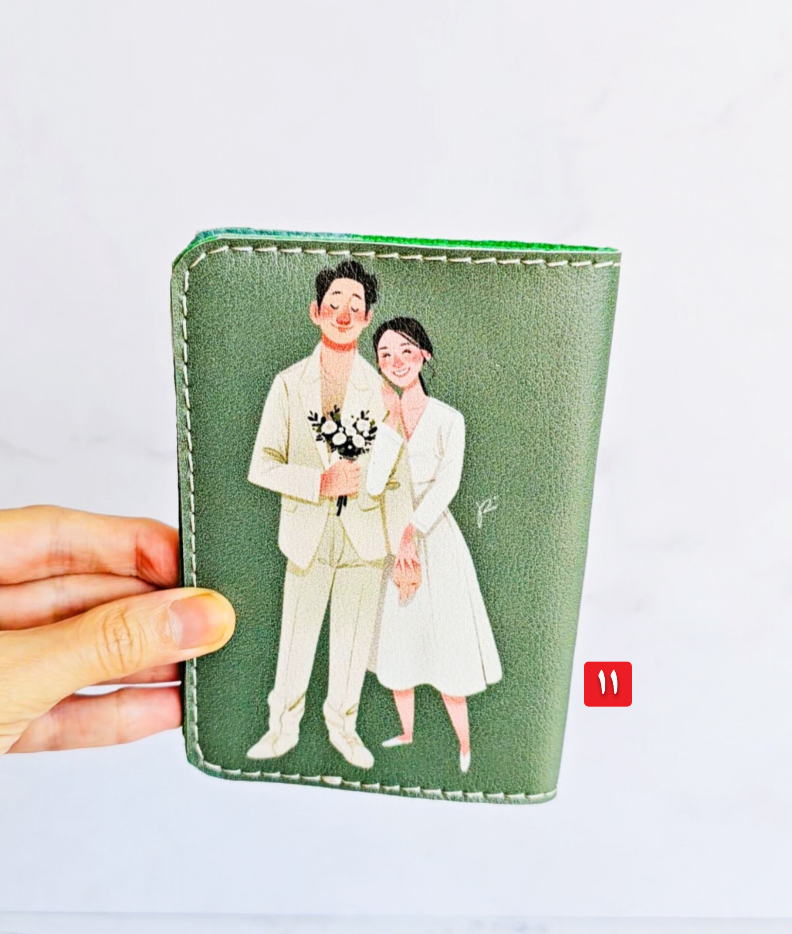 جلد شناسنامه و پاسپورت چرمی طرح عروس داماد سبز